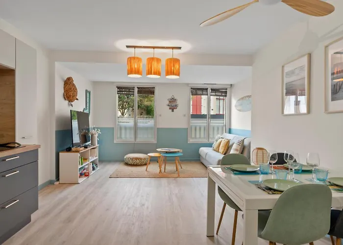 The 1-room Bel Apt Neuf - Hypercentre 400M Plage-Pkg-Wifi-T3 is also located merely a 6-minute walk from Parc Mauresque. You can engage in various activities, such as windsurfing, canoeing, and hiking organised in the area.